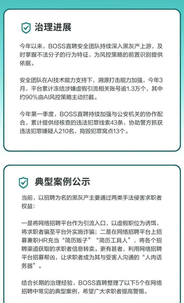 BOSS直聘公布打击招聘黑灰产进展:3月封禁虚假引流账号1.3万个